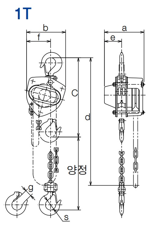 1T 사양 기준 후크 간 최소거리 295mm
