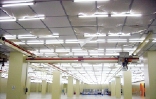 크린 크레인은 일반적으로 천장에 설치되어 HOIST의 HOOK를 이용해 물건을 이동 안착시키는 운발설비로서, 크린룸 환경이 조성된 장소에서 테스트를 거쳐 PARTICLE 발생을 최소화 시킬 수 있는 재질 및 구조로 구성된 크레인 입니다.