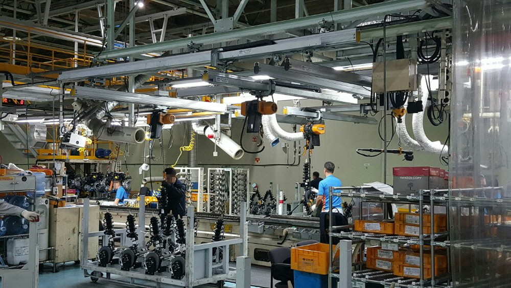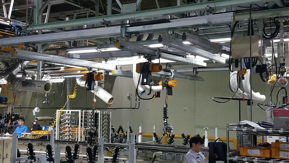 EQ 사용사례 등록일 : 2022-07-05 <1. 자동차 조향장치 이동 설치용> <2. 샤프트 가공용> <3. 자동차 조향장치 이동 설치용 (1번과 같은 현장)> <4. 자동차 부품 생산용> <5. 제품 적재용 지그 이동용> 목록으로